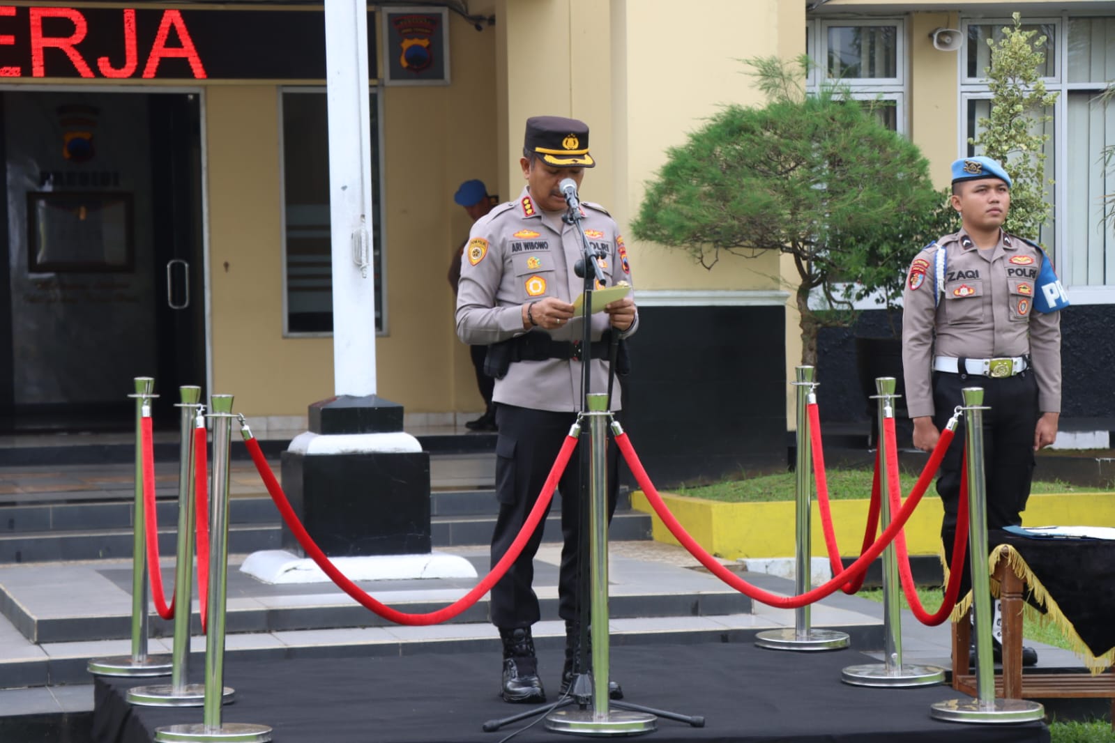 Kapolresta Banyumas Kombes Pol Dr. Ari Wibowo S.I.K., M.H., memimpin kegiatan apel pagi yang dilanju