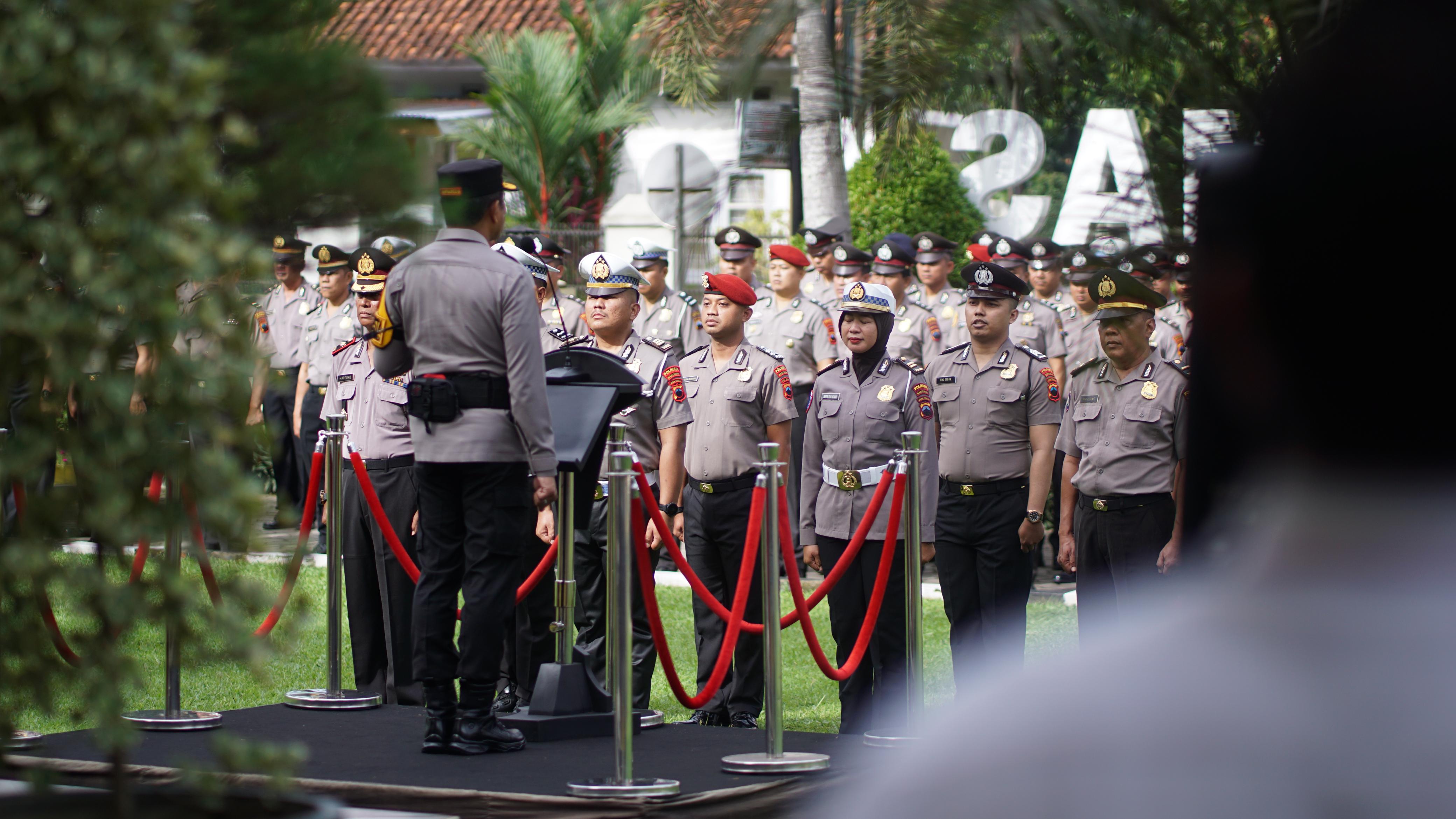 Kapolresta Banyumas Kombes Pol Dr. Ari Wibowo, S.I.K., M.H., memimpin upacara Korps Raport kenaikan