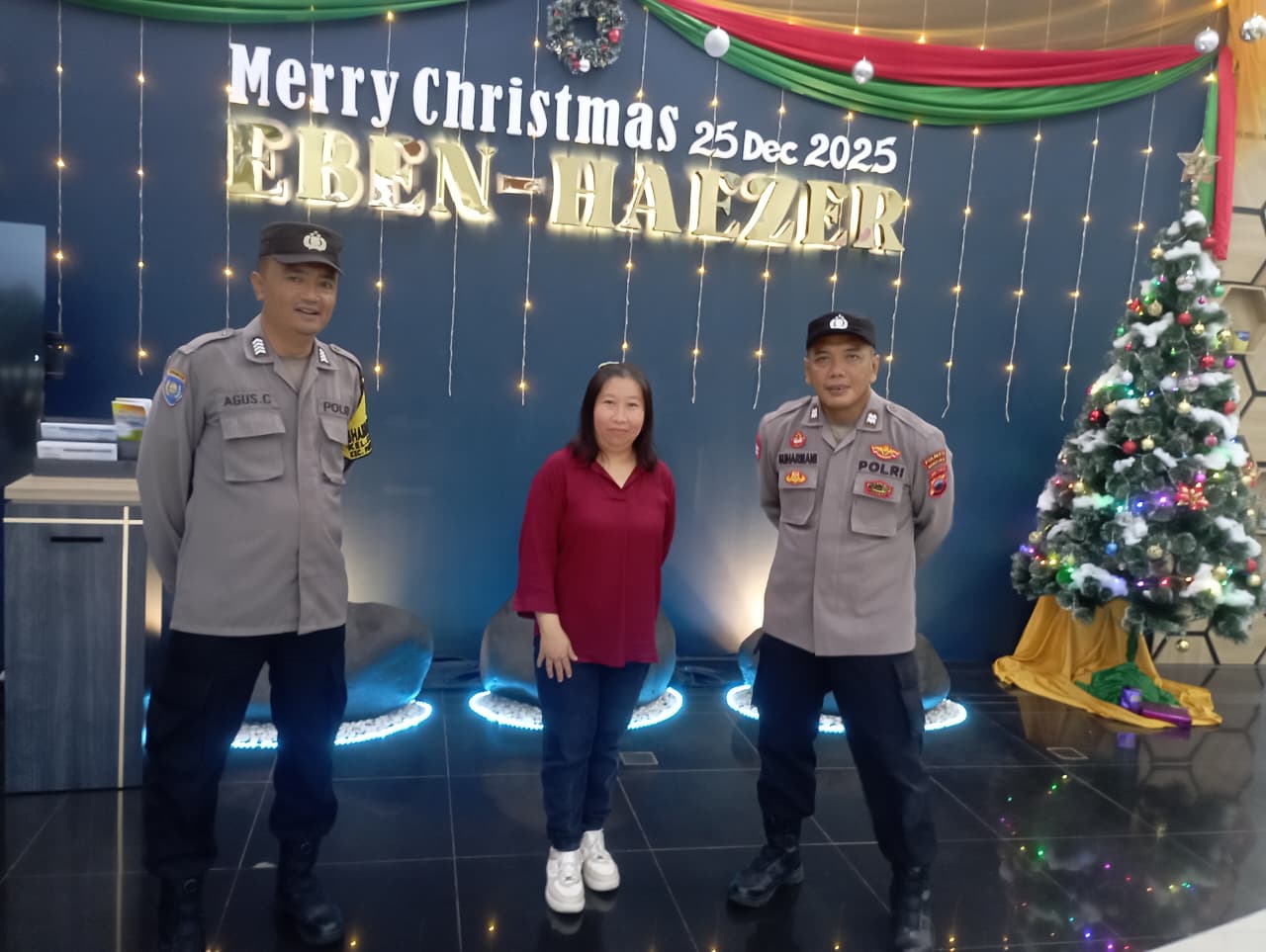 Polsek Purwokerto Utara Polresta Banyumas melaksanakan pengamanan dan monitoring kegiatan Ibadah Natal Anak Muda bertema “Christmas Concert” di Gereja Bethel Indonesia (GBI) Eben Haezar Purwokerto, Jalan Permata Hijau Raya RT 01/11, Kelurahan Bancarkembar, Kecamatan Purwokerto Utara, Minggu (14/12/2025) sore.