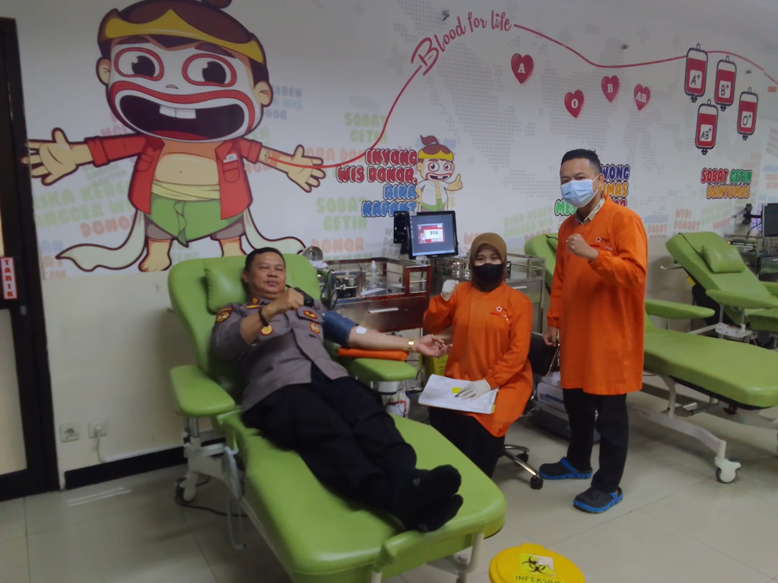 Kapolsek Sokaraja melaksanakan kegiatan donor darah sukarela di PMI Jalan Pekaja, Kamis (26/12/24)."