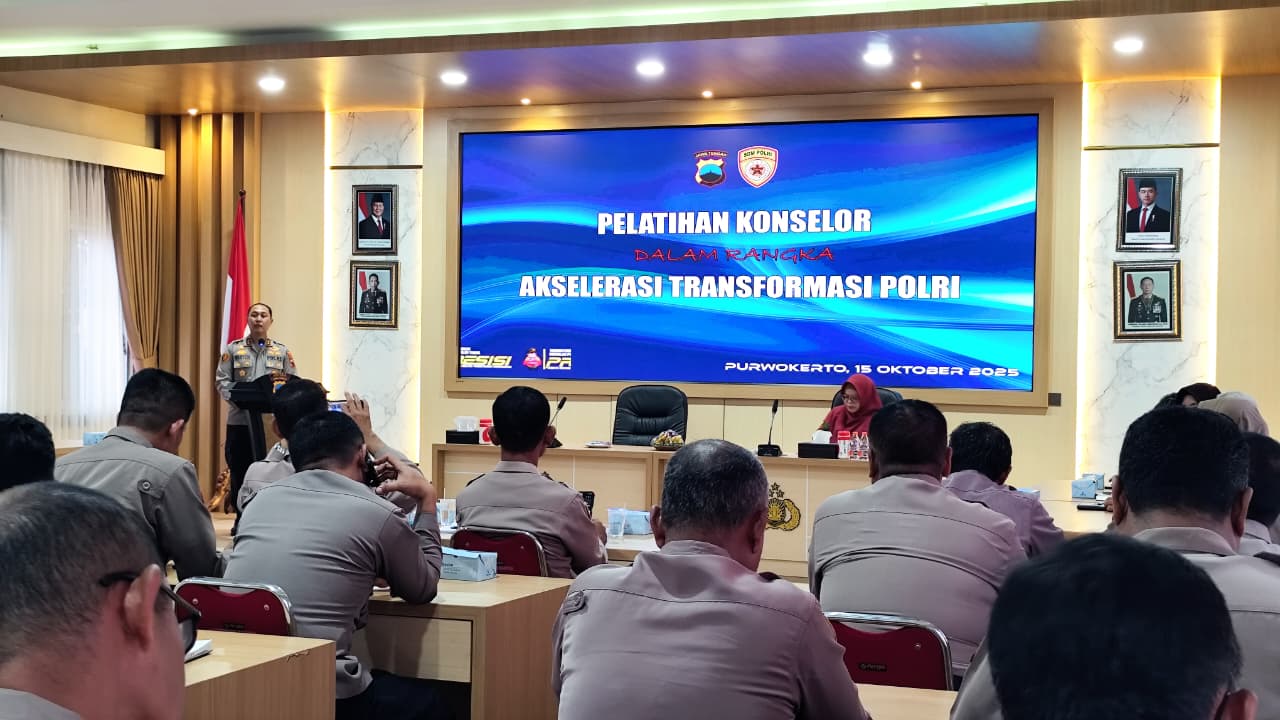 Dalam upaya memperkuat sumber daya manusia yang profesional dan bermental tangguh, Polresta Banyumas menggelar kegiatan Pelatihan Konselor dalam Rangka Akselerasi Transformasi Polri pada Rabu (15/10/2025) di Aula Rekonfu Polresta Banyumas.