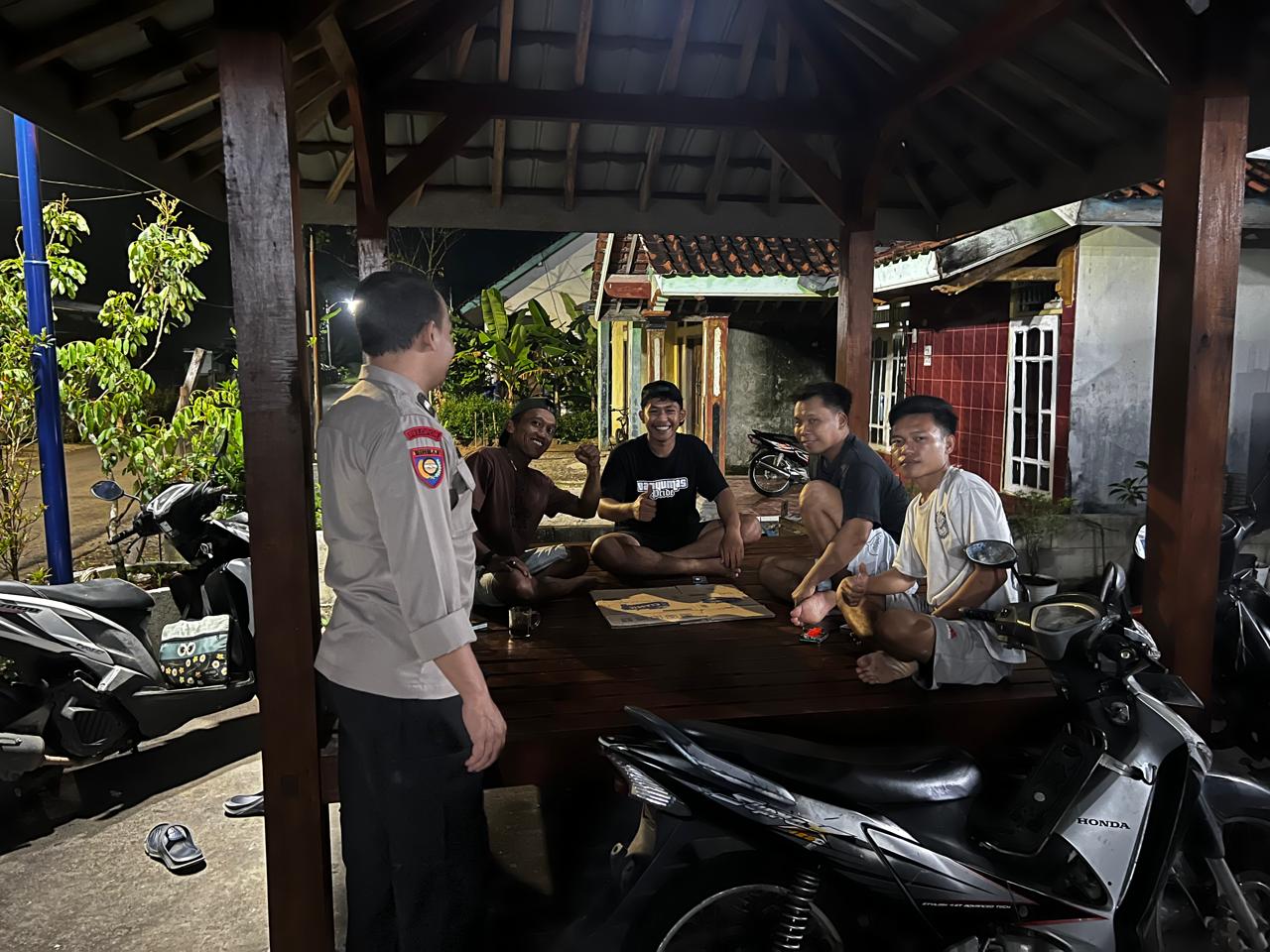 Dalam kegiatan tersebut, Bhabinkamtibmas berdialog langsung dengan warga yang tengah melaksanakan ronda malam.